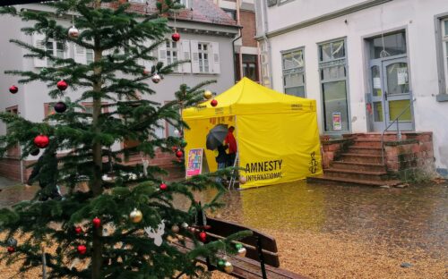 Aus Anlass des Tages der Menschenrechte am 10. Dezember wird Amnesty Darmstadt – Gruppe Dieburg – wieder mit einem Informationsstand am Dieburger Marktplatz vertreten sein. Wir werden Briefe zur Unterstützung der für den Briefmarathon weltweit ausgewählten Menschen zum Unterschreiben ausliegen haben und stehen für Auskünfte zur Verfügung. Weitere Informationen zum Briefmarathon findet Ihr hier auf der Hauptseite.